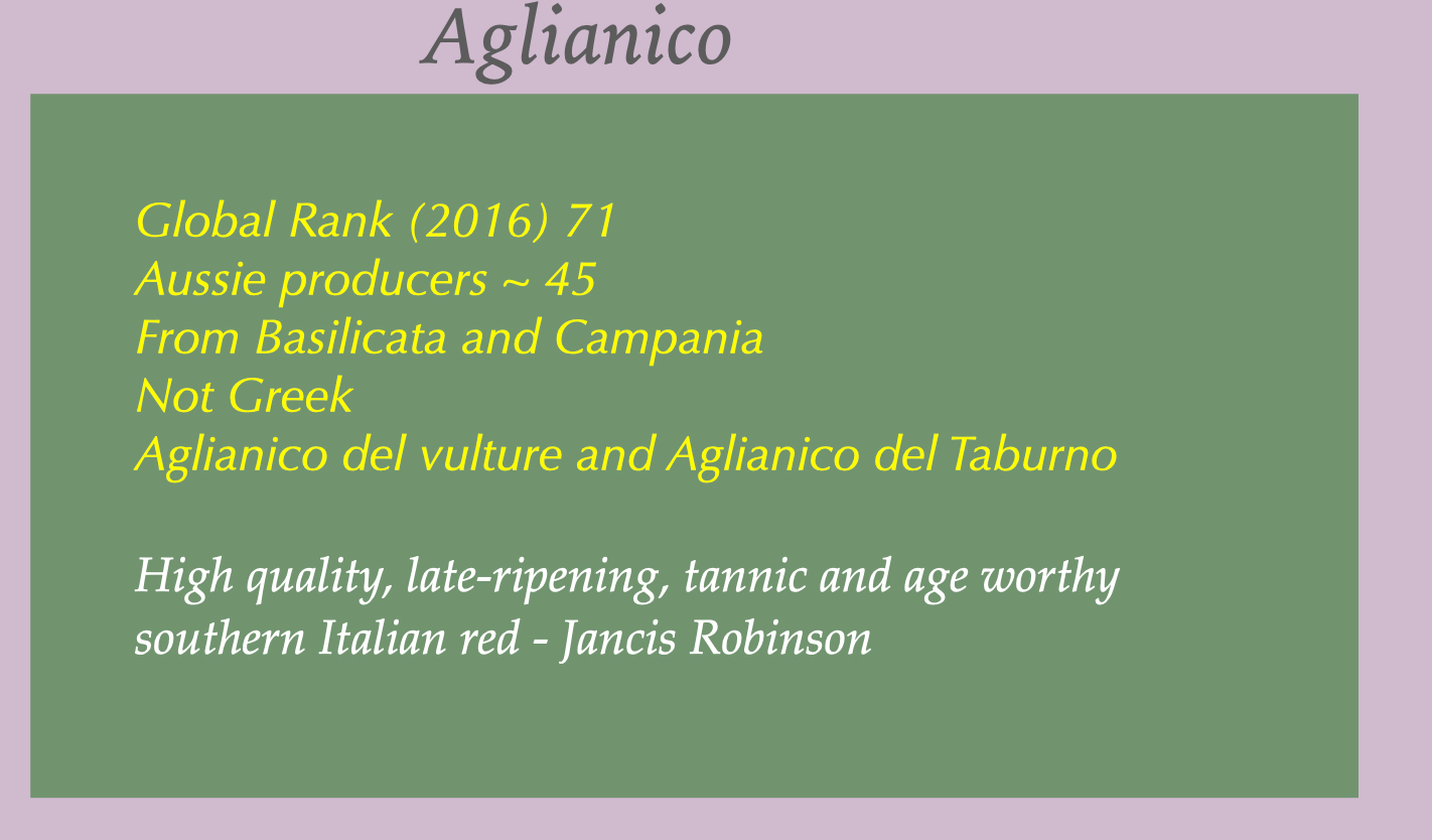 In December 2021 my Taste and Talk group discussed some of the lesser known Italian alternative varieties used in Australia.