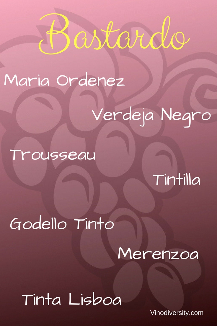 Bastardo originated in the Jura region of Eastern France, where it is known as Trousseau. There it makes a variety of wine styles including a reds, roses, the sweet fortified Macvin du Jura as well as white and pink sparkling wine.
